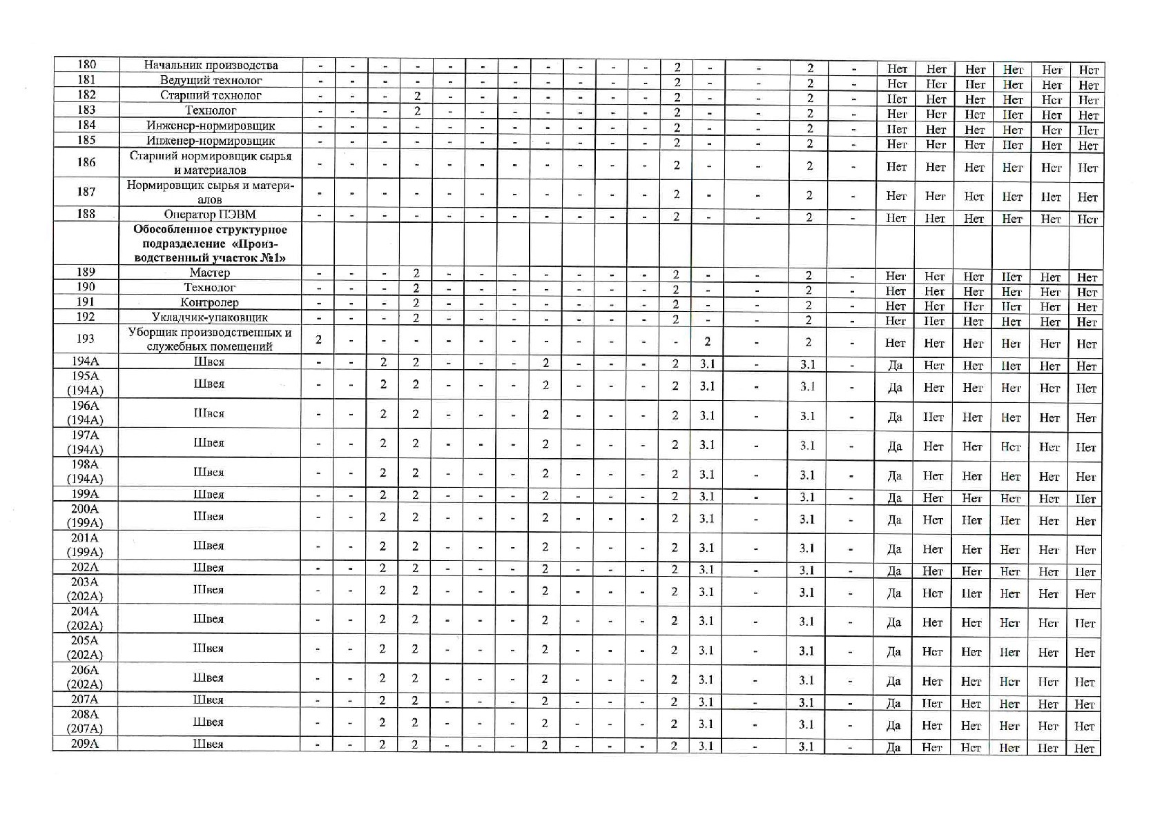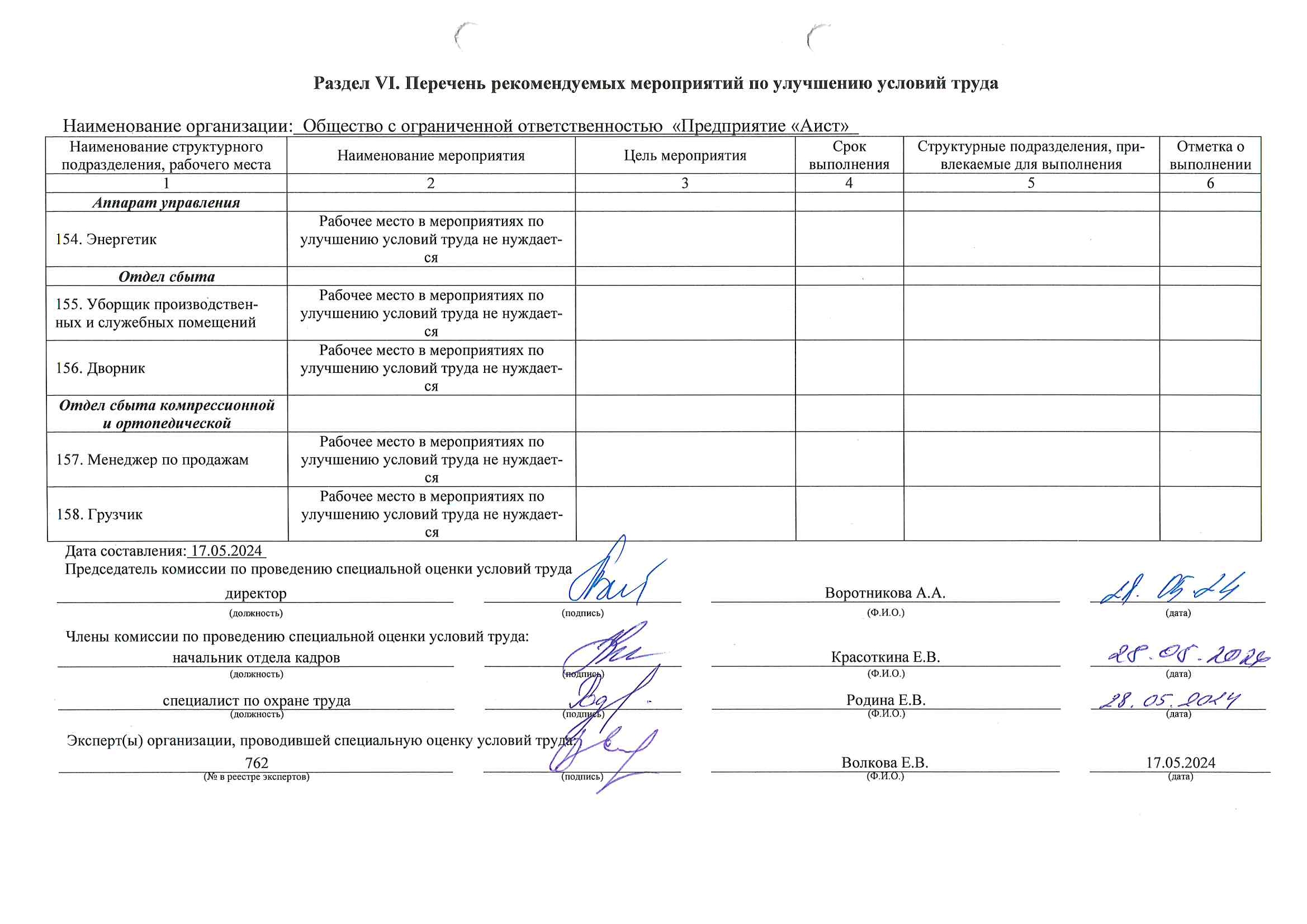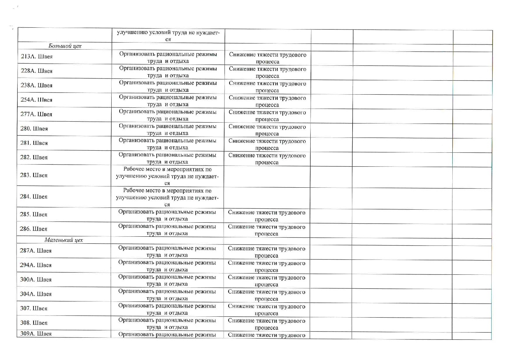 Сводная ведомость результатов проведения специальной оценки условий труда ООО «Предприятие «Аист»